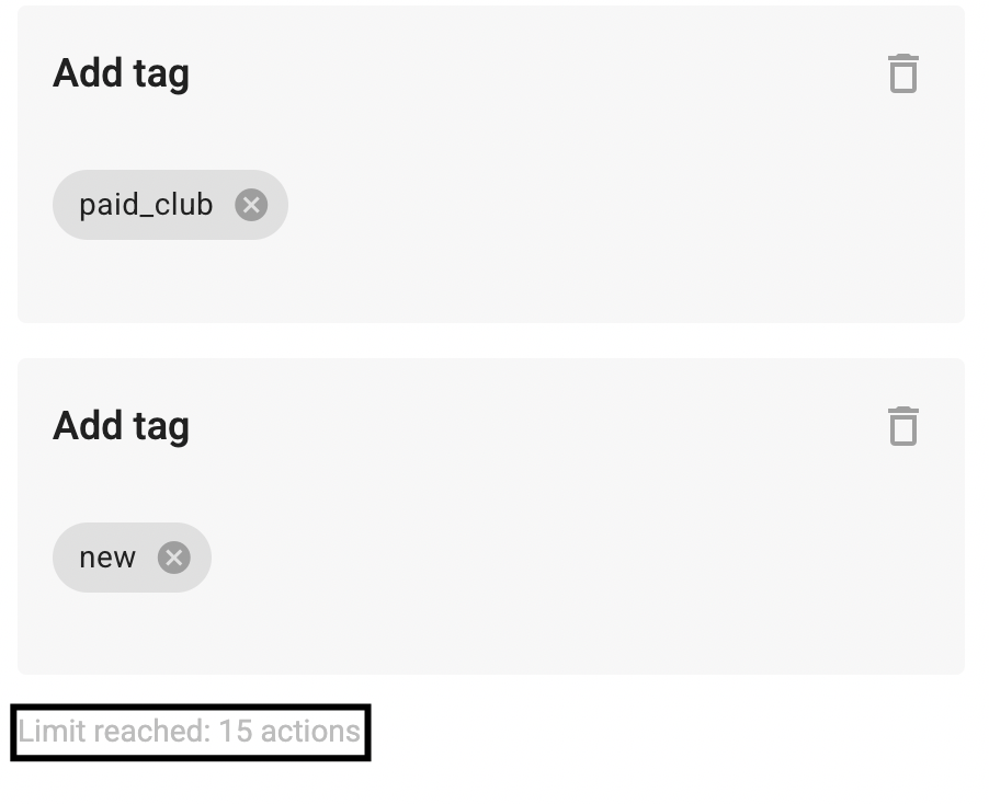 In the “Action” step, you can add no more than 15 actions.