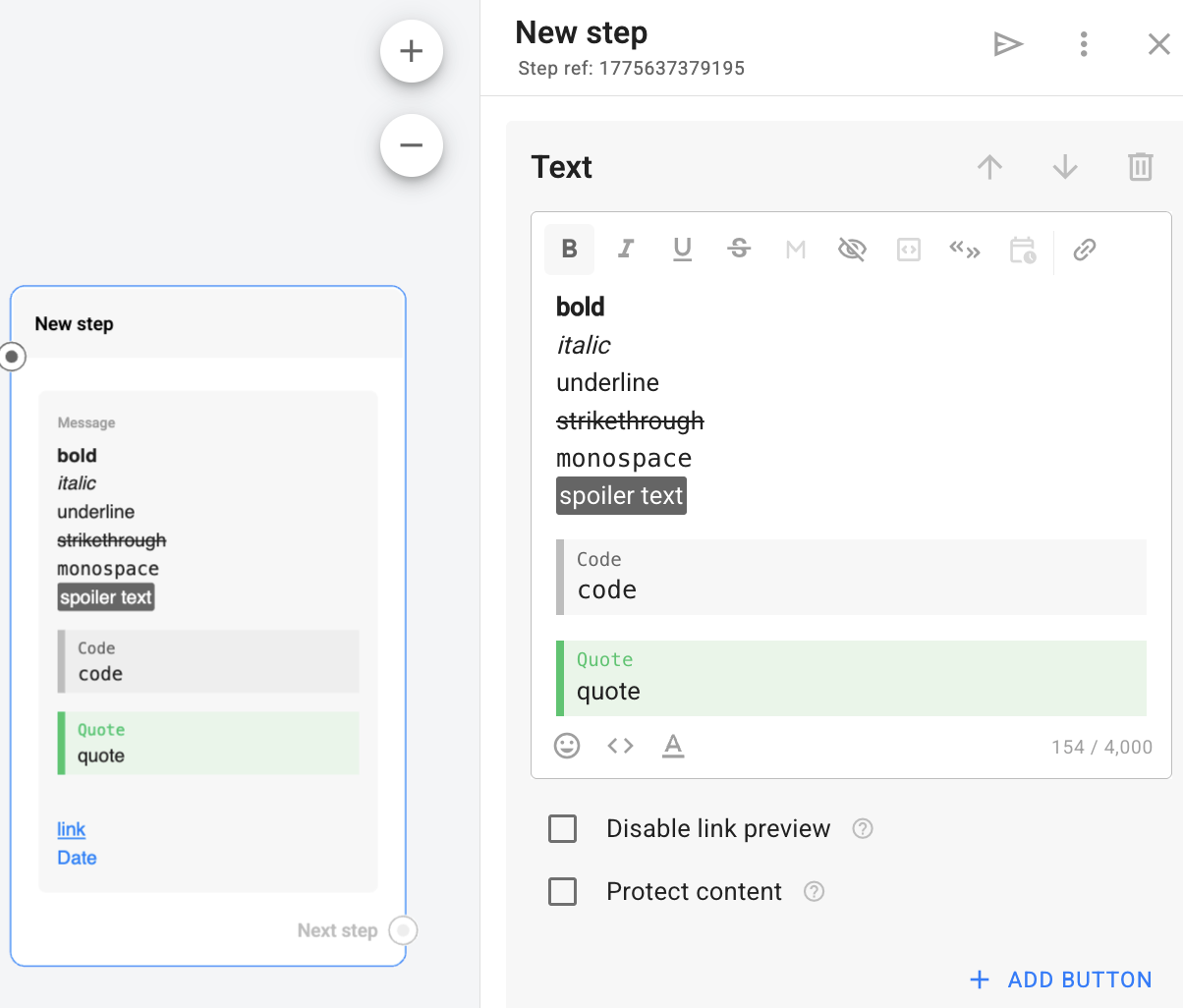 Attention! When copying a text with markup and when converting a flow to another messenger, you need to check its correctness, because not all messengers support formatting.