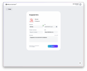 Важно: одному номеру телефона или почте соответствует один профиль организации и привязанные к нему сервисы: чат-боты, мини-приложения и каналы.