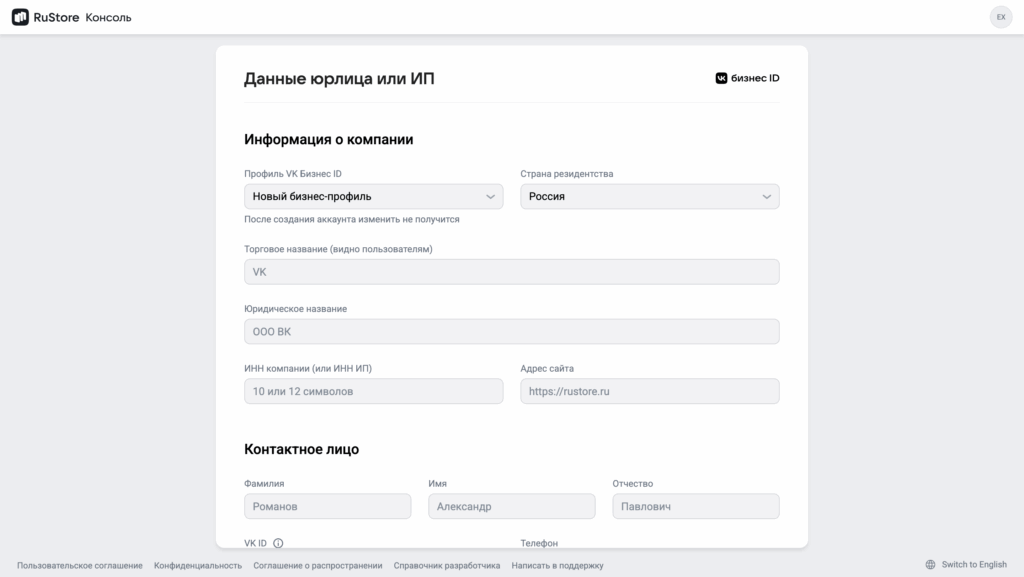 Если возникли вопросы – обратитесь в службу поддержки support@rustore.ru (в обращении важно указать VK ID, ФИО и ИНН).