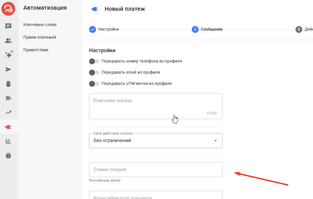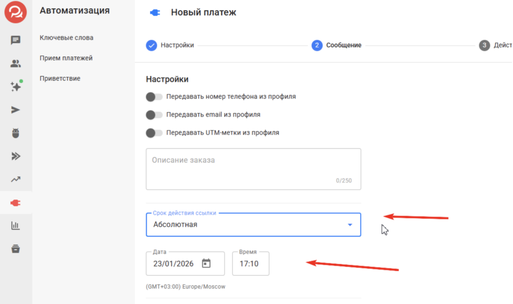 Если это разовая оплата, то необходимо сделать две настройки автоматизации приема платежей: