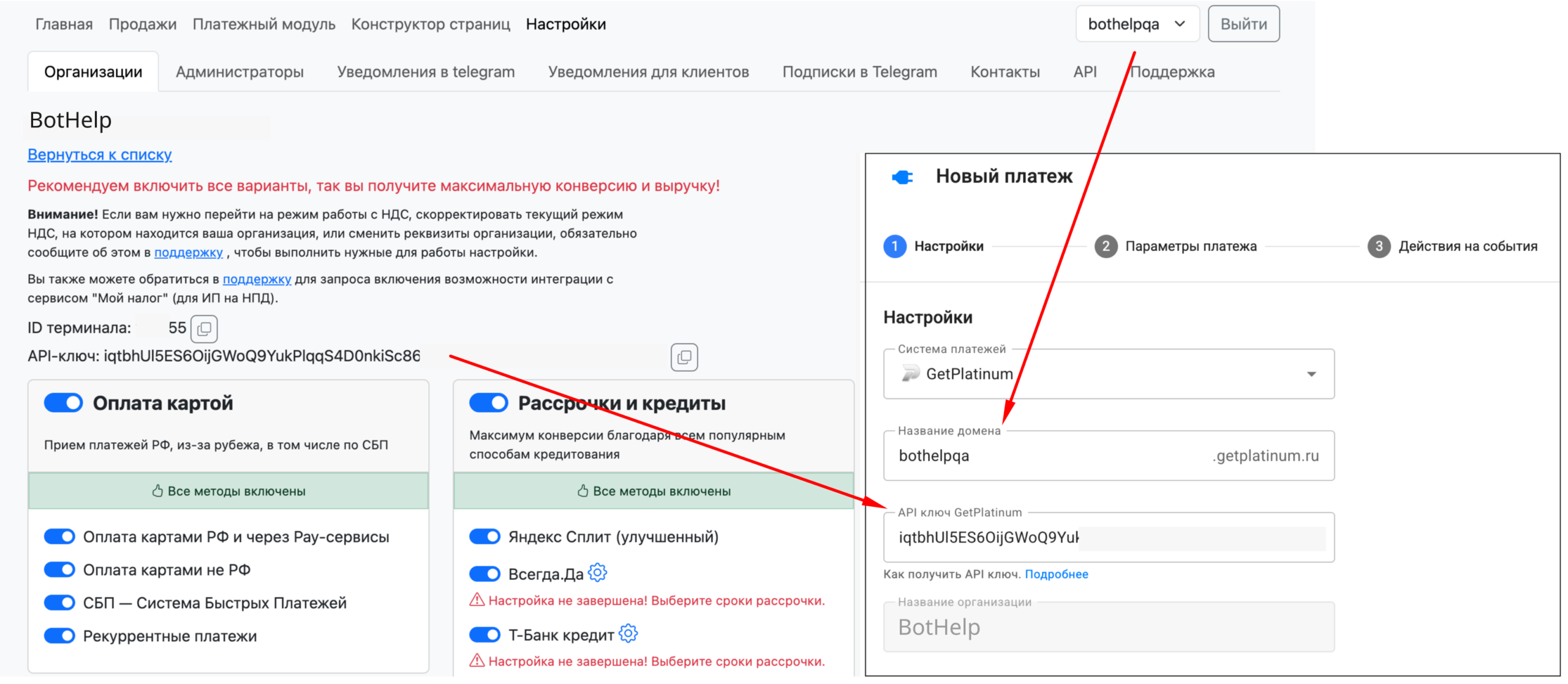 Когда организация и способы оплаты одобрены — можно переходить к настройке в BotHelp.