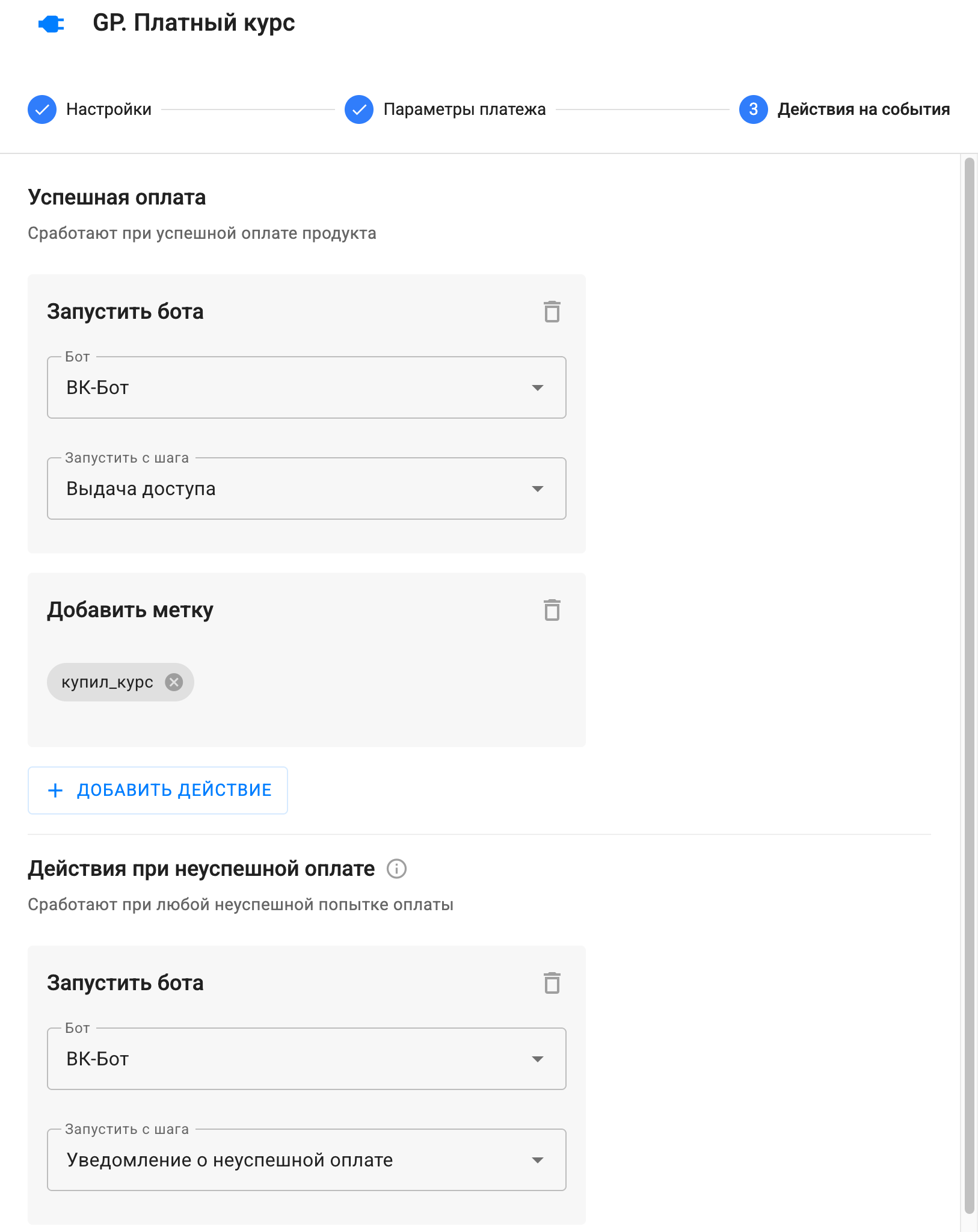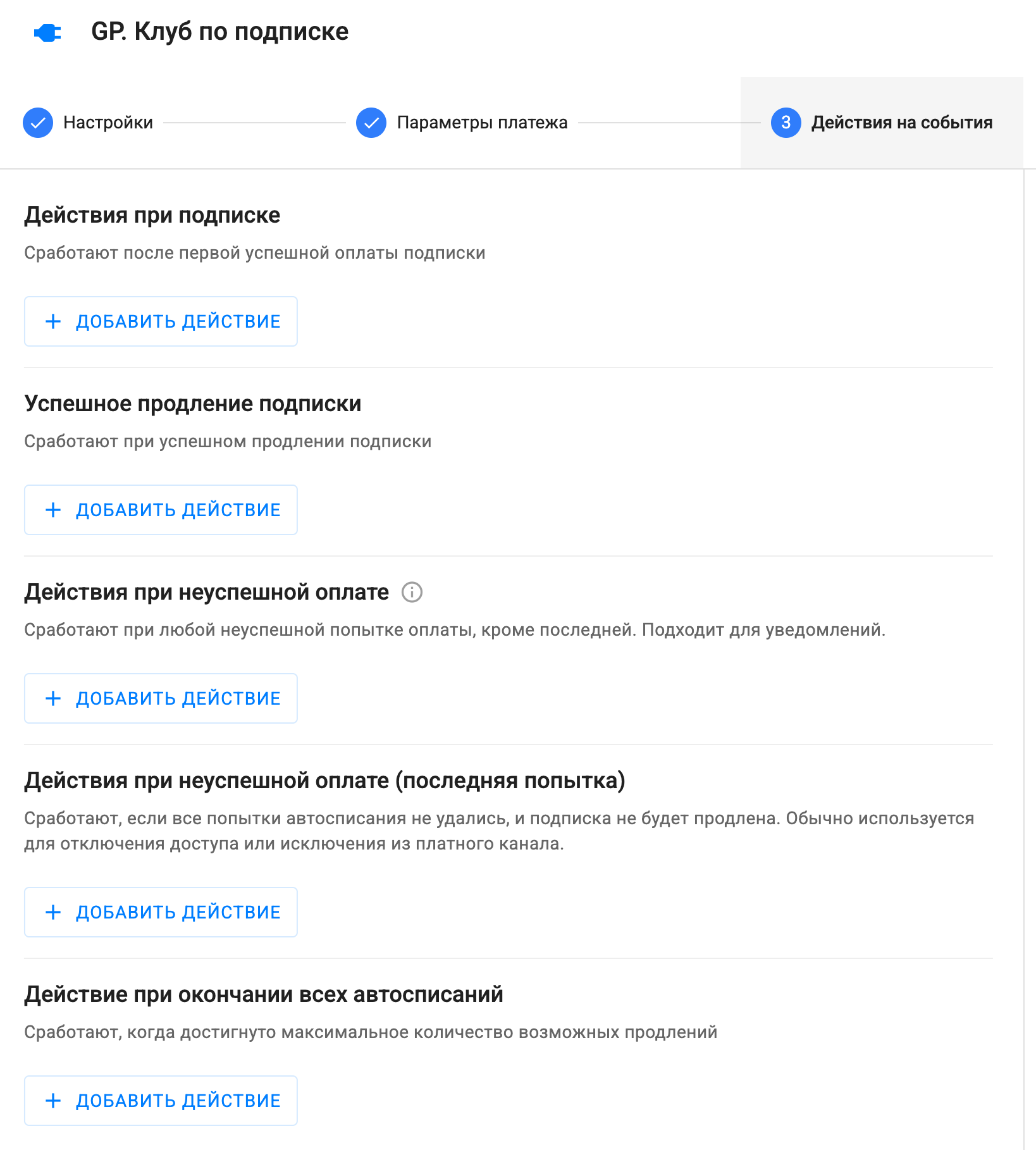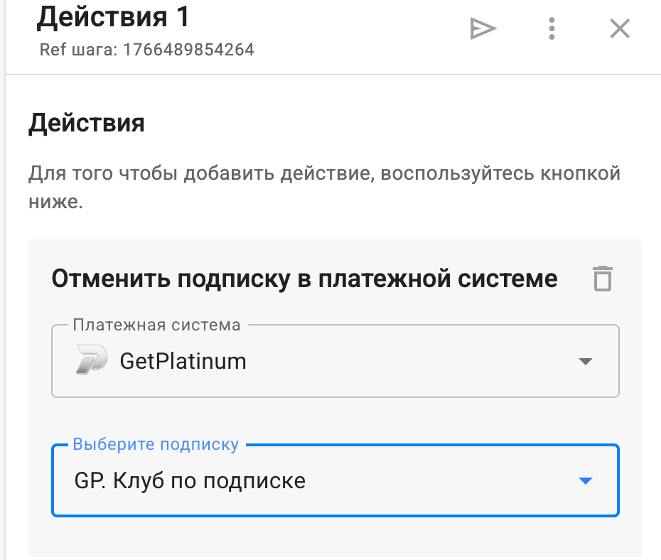 • Действие «Отменить подписку» работает только для подписок, созданных в BotHelp.