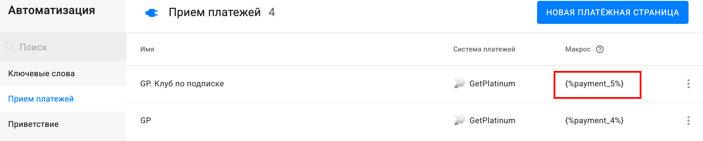 Макрос доступен в разделе Приём платежей, в столбце «Макрос».
