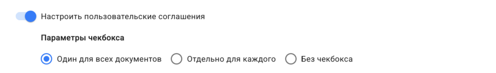 Также доступна настройка отображения чек-бокса подтверждения согласия.