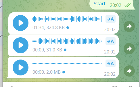 Если длительность голосового сообщения более 10 минут, то голосовое сообщение будет отображаться в боте с плоской полосой воспроизведения.