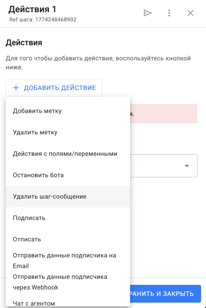 - При переносе в канал без поддержки удаления сообщений действие автоматически удаляется из сценария.