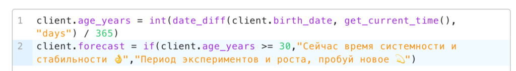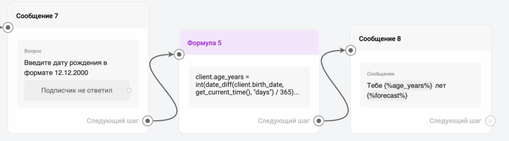 Узнав дату подписчика, мы можем передать ее в переменной birth_date в шаге «Формула».