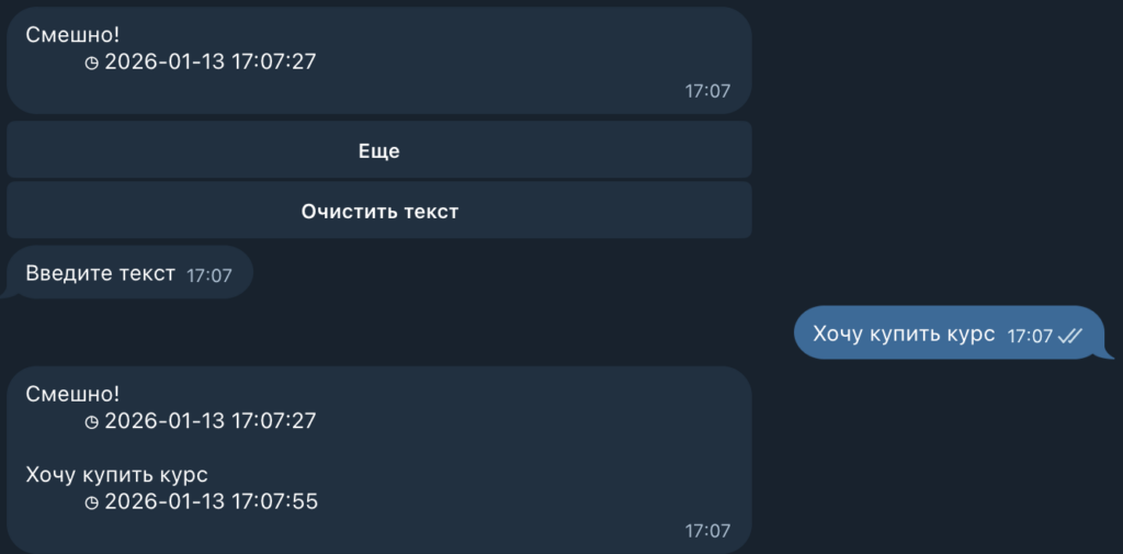 if()преобразуем результат в текст для вывода пользователю. - Показываем результат в сообщении.