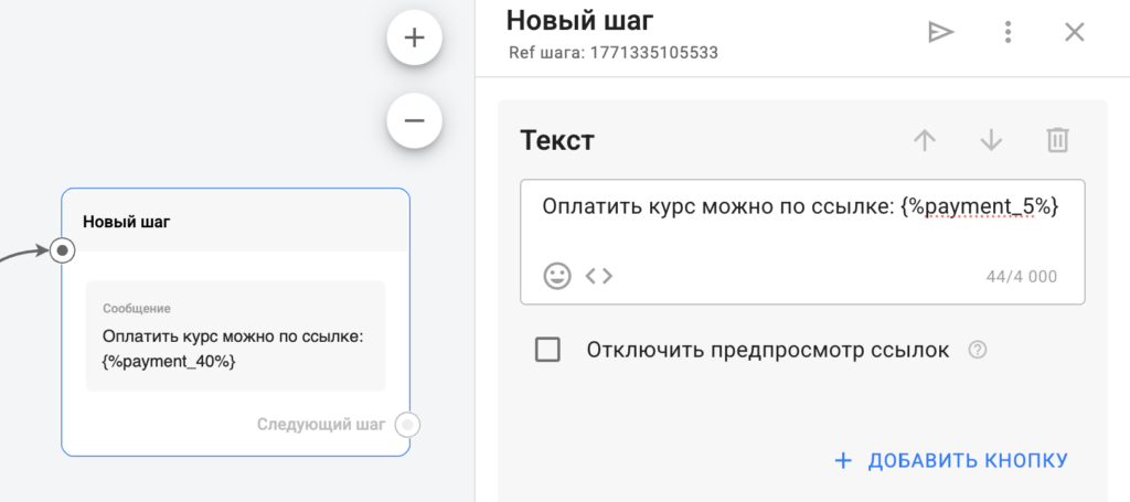 После этого скопируйте макроc, чтобы вставить его в текстовое сообщение или URL-кнопку MAX. При отправке сообщения макрос преобразуется в ссылку для оплаты.